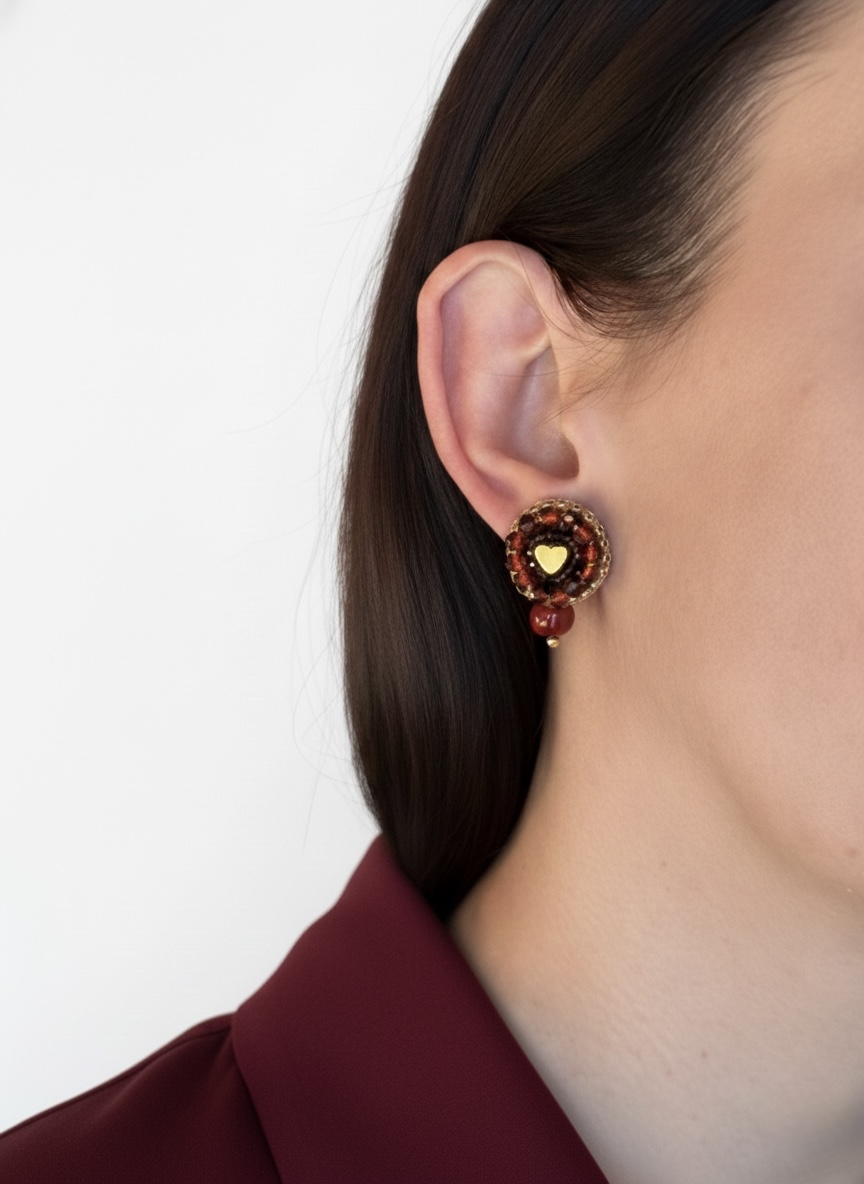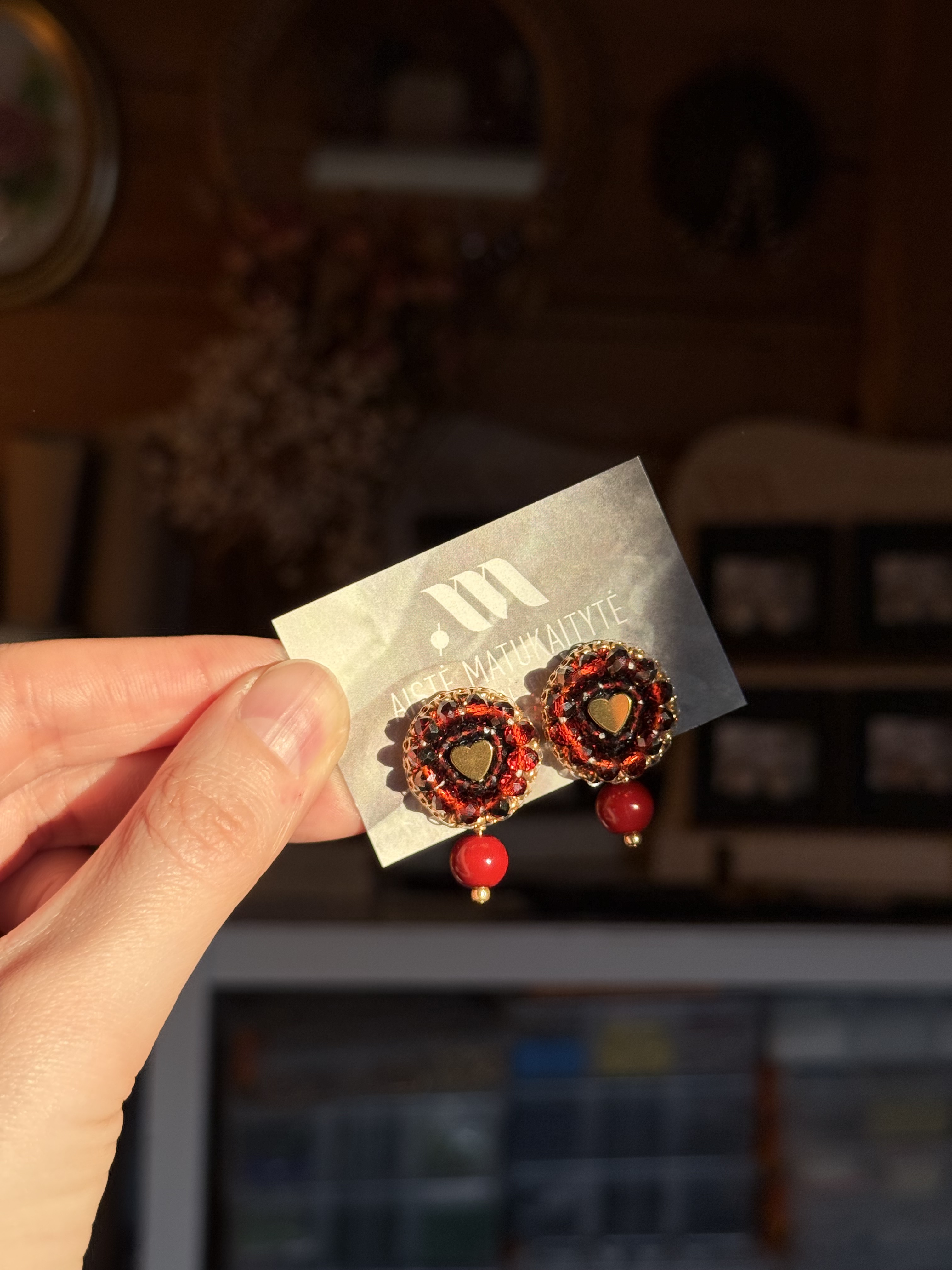 Rankomis siuvinėti auskarai su širdelėmis – tai kruopštaus darbo ir jausmo derinys. Širdelės motyvas simbolizuoja meilę, šilumą ir ryšį – todėl šie auskarai puikiai tinka Valentino dienai, romantiškai progai ar kaip išskirtinis akcentas kasdieniam stiliui. Lengvi, patogūs ir išraiškingi, jie suteikia charakterio tiek minimalistiniam, tiek ryškesniam įvaizdžiui.
